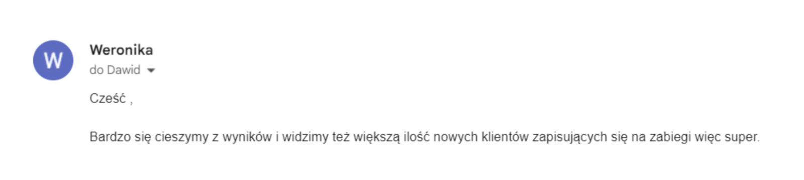 Dzięki temu szybko dotarliśmy do nowych odbiorców, a gdy już oswoili się z marką, mogliśmy skutecznie wrócić do nich wykorzystując remarketingowe kampanie sprzedażowe. Taka strategia pozwoliła nam nie tylko zwiększyć zasięgi, ale także skutecznie domykać konwersje, czyli pozyskiwać realne zapisy na zabiegi, co przełożyło się na wyniki finansowe salonu.